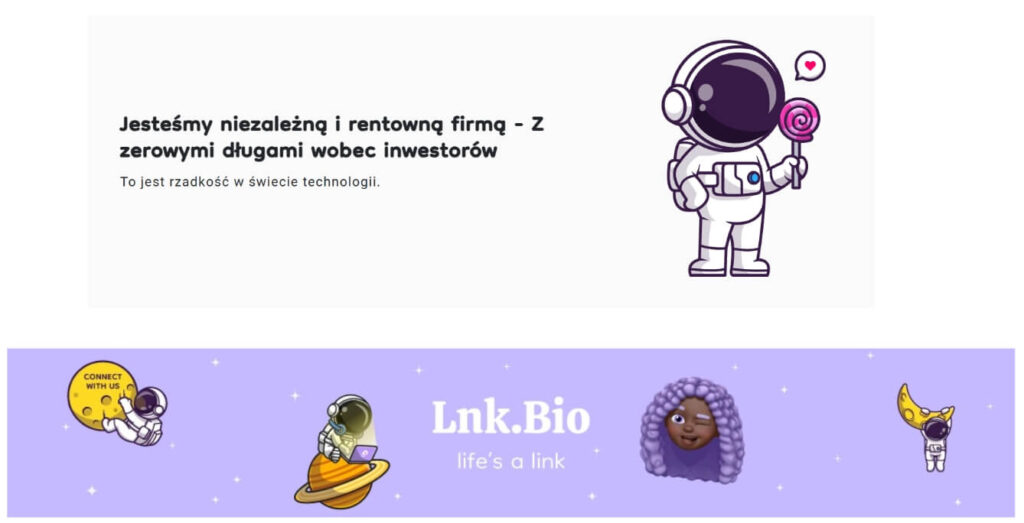 To zaawansowany kreator landing page’ów z bogatymi opcjami personalizacji, edytowalnymi widgetami, ponad 400 szablonami i integracjami z ponad 180 narzędziami marketingowymi. Oferuje również funkcje do zarządzania większymi projektami, jak Smart Sekcje, oraz rozbudowane opcje marketingowe. Choć Linktree jest proste w użyciu, bardziej wymagający użytkownicy mogą preferować Landingi, które oferuje bardziej zaawansowane i dopasowane rozwiązania.