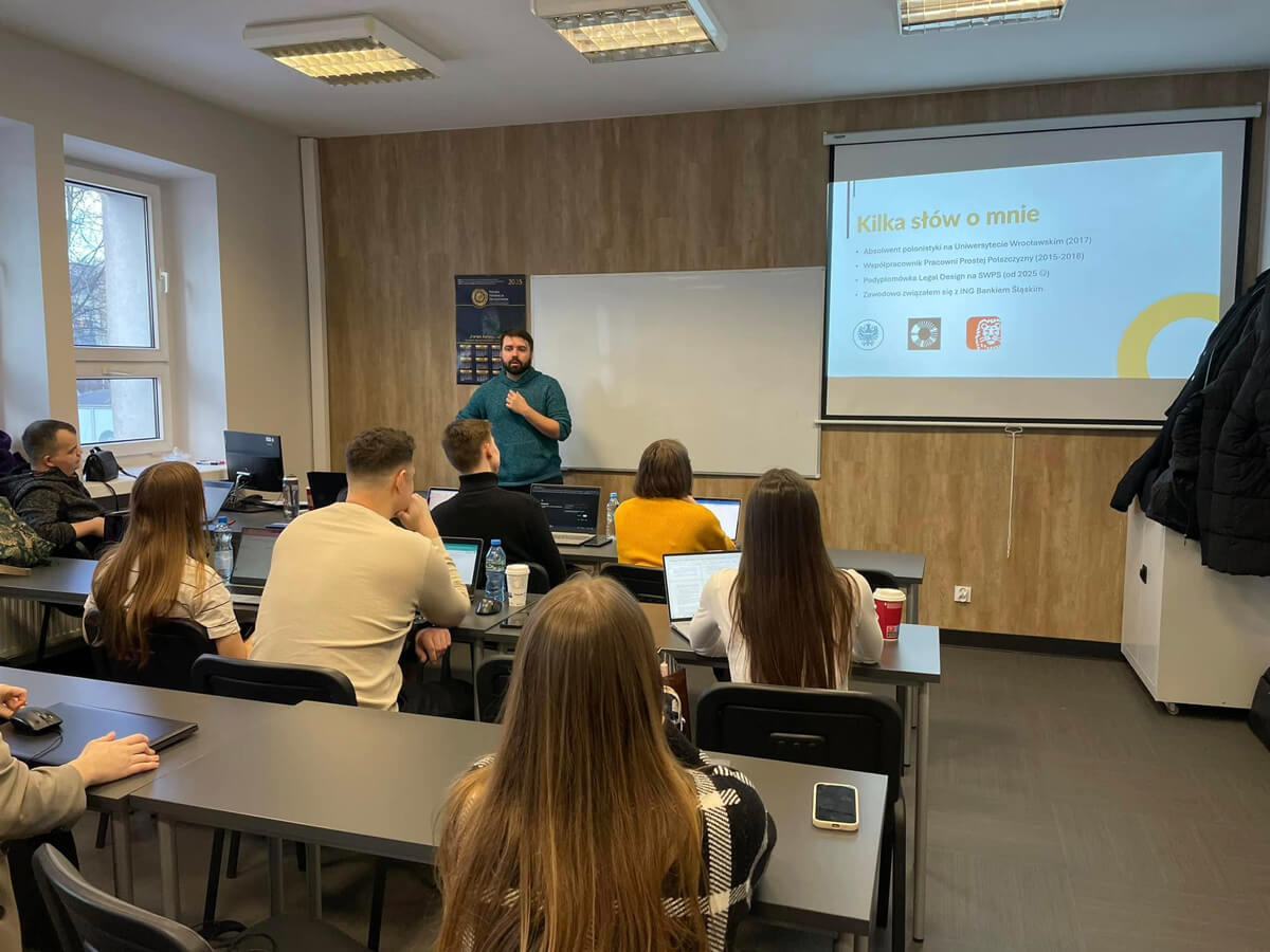 Naszym ekspertem był Marcin Grocki, specjalista od prostego języka, który od 2015 roku działa w ING Banku Śląskim. Tam nie tylko szkoli zespoły, ale także współtworzy aplikację „Prostomat”, pomagającą upraszczać komunikację. Podczas naszego spotkania poznaliśmy tajniki prostego języka, dowiedzieliśmy się, jak skutecznie pisać, a także przekonaliśmy się, że prostota wcale nie oznacza banału – wręcz przeciwnie! To sztuka, którą warto opanować.